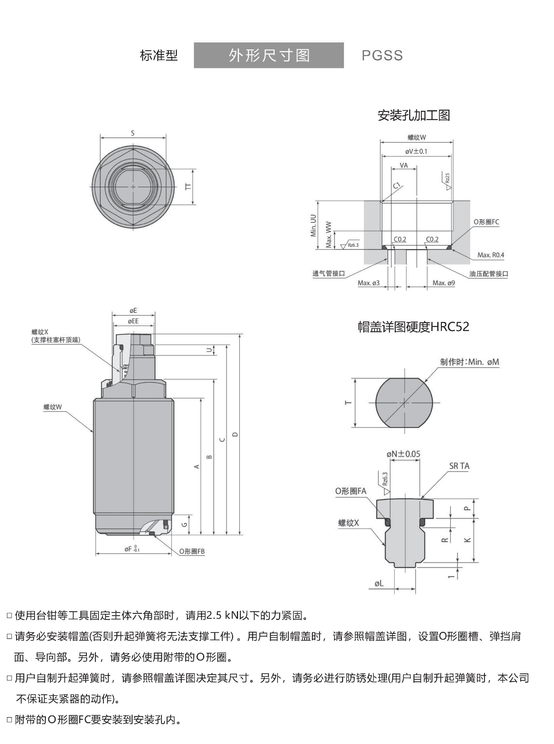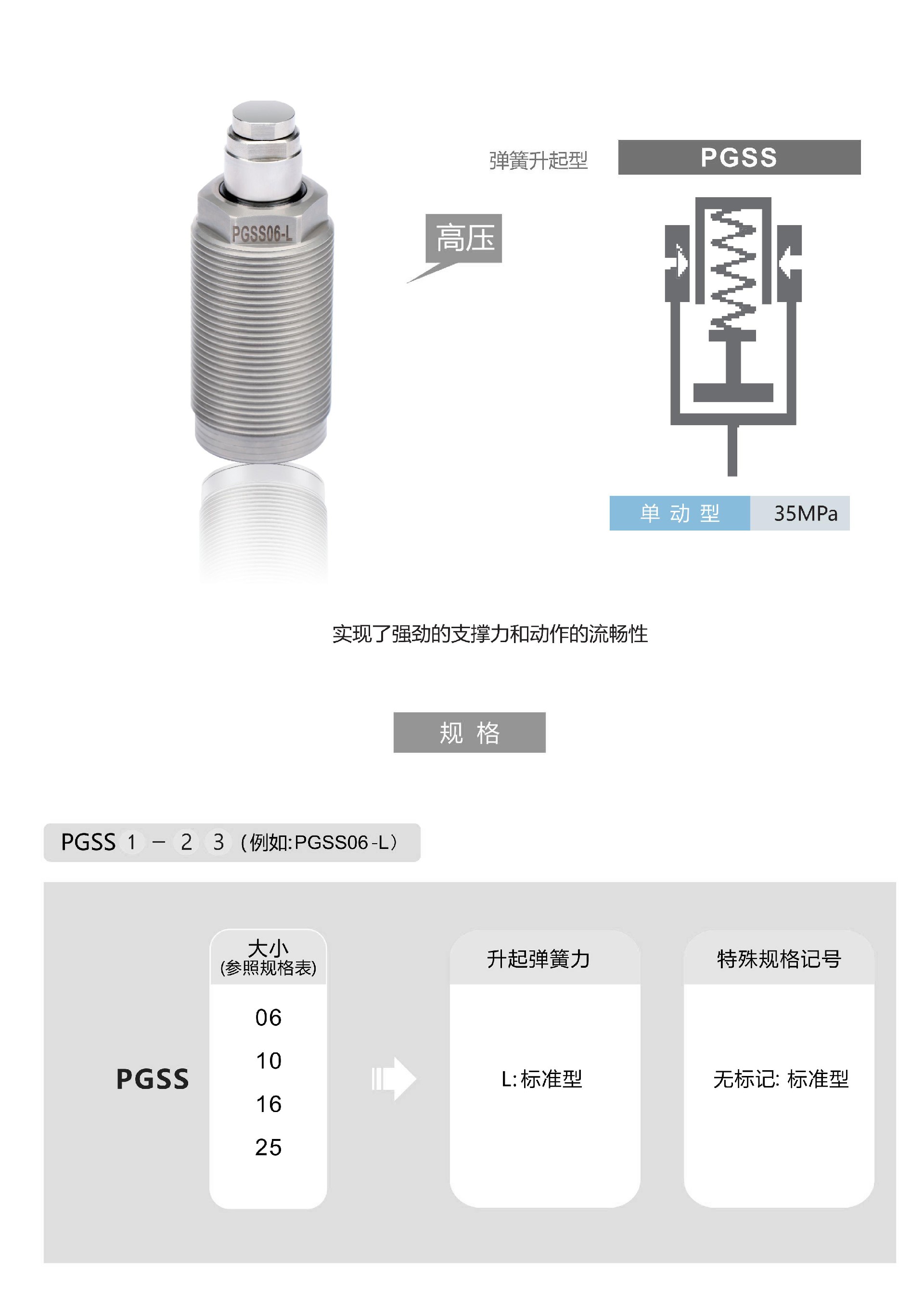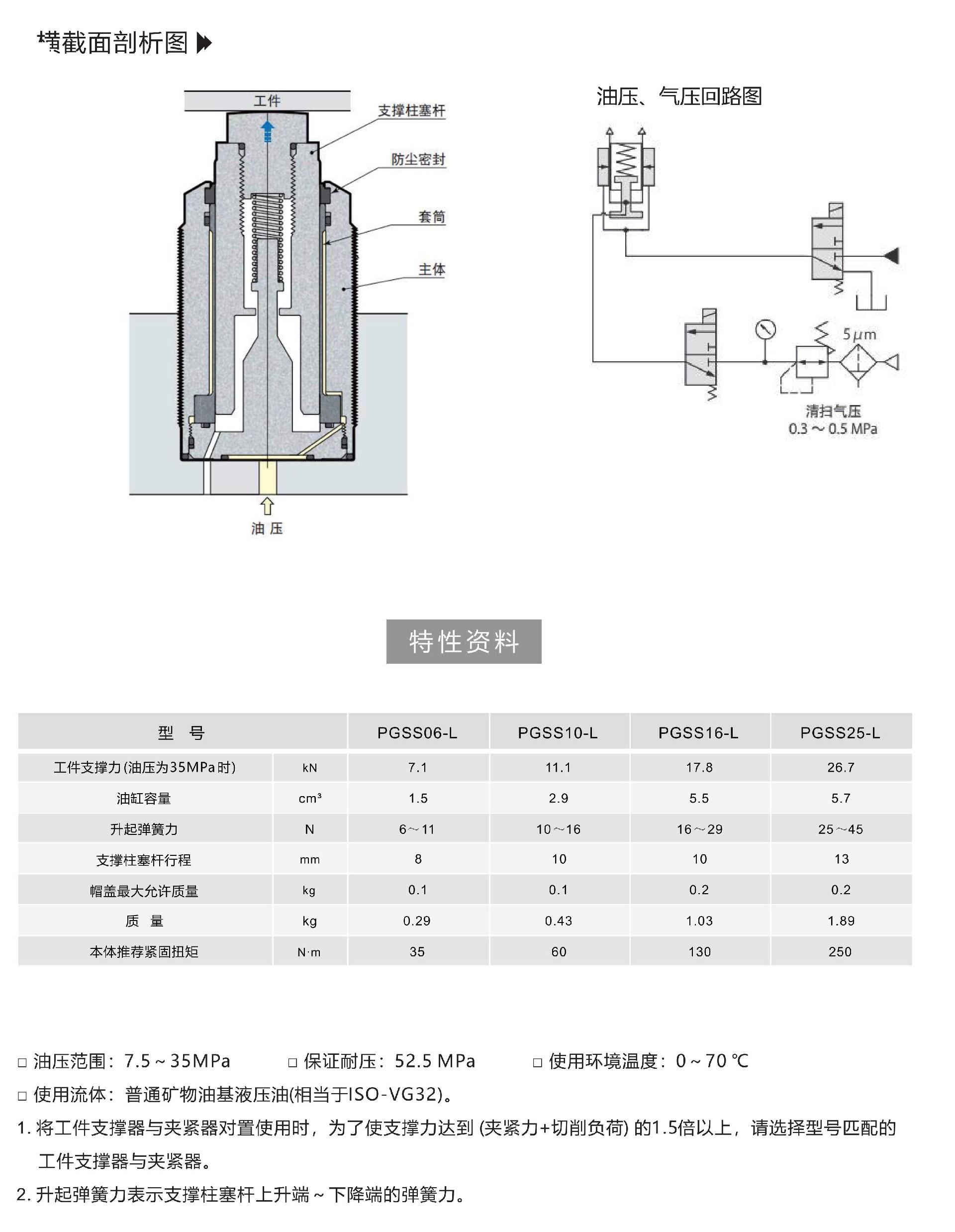 油压高压支撑缸 弹簧升起型PGSS