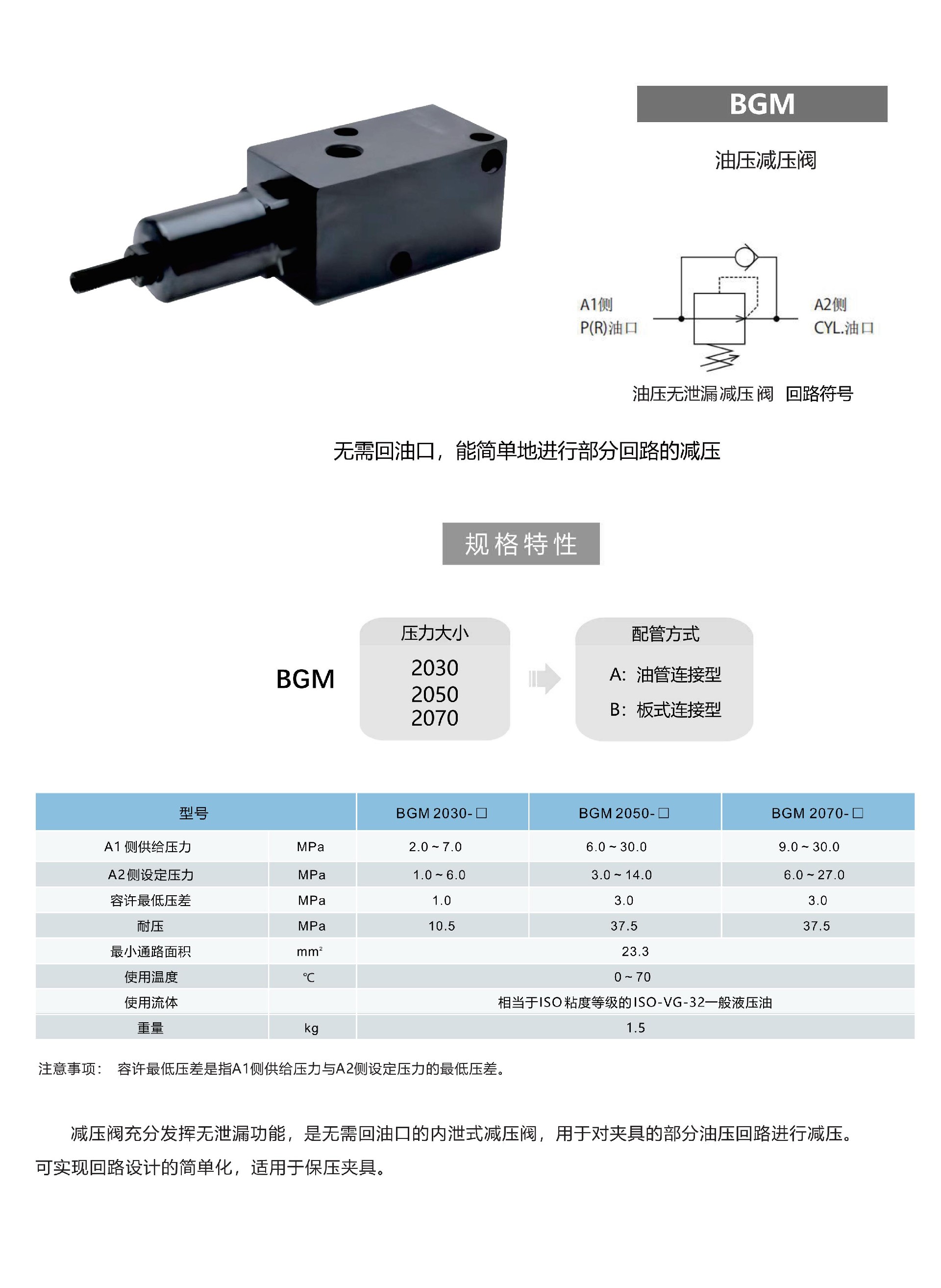 油压减压阀 BGM